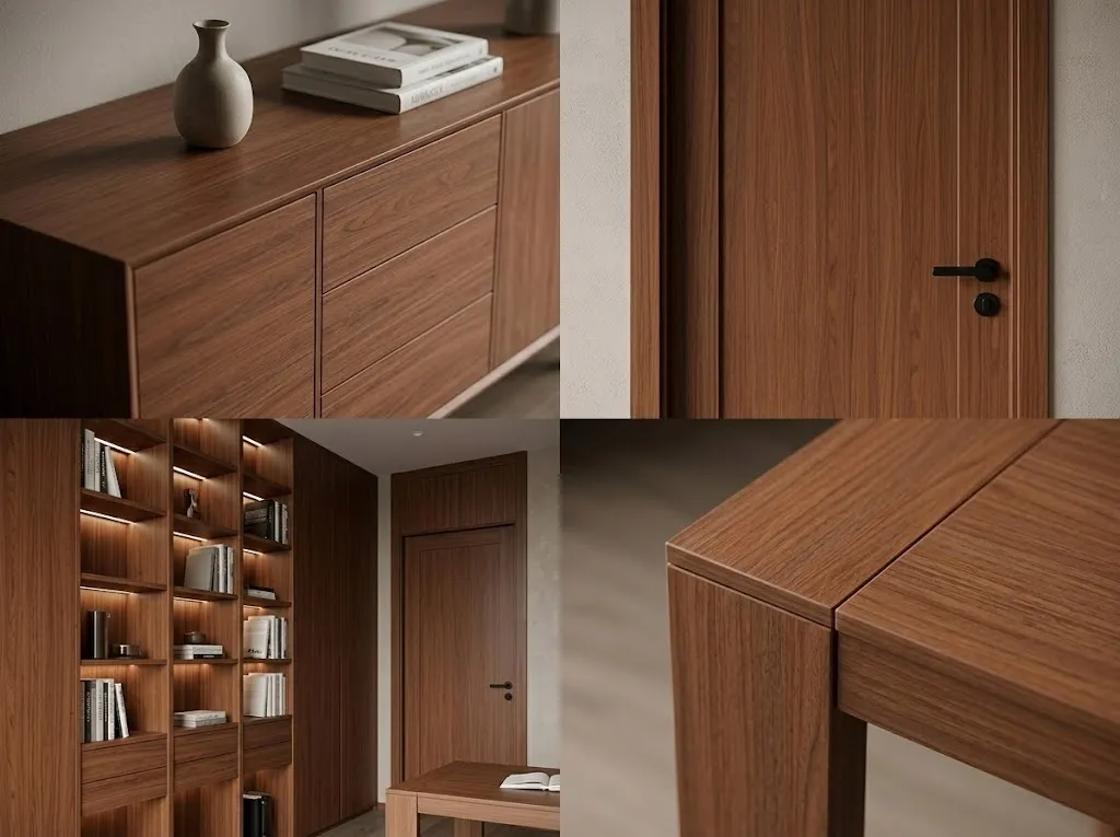 Many people have misunderstandings about melamine board. It is necessary to clarify one point: it does not use melamine as the base material, but is a composite board made by soaking decorative paper printed with textures or colors in melamine resin adhesive for full curing, then paving it on the surface of base materials such as particleboard and medium-density fiberboard (MDF), and pressing it at high temperature and pressure. In particular, it should be clarified that it has nothing to do with the “melamine incident”. The melamine resin in qualified products is stable and non-toxic after curing, fully complying with indoor use safety standards, and can be safely used in home environments.