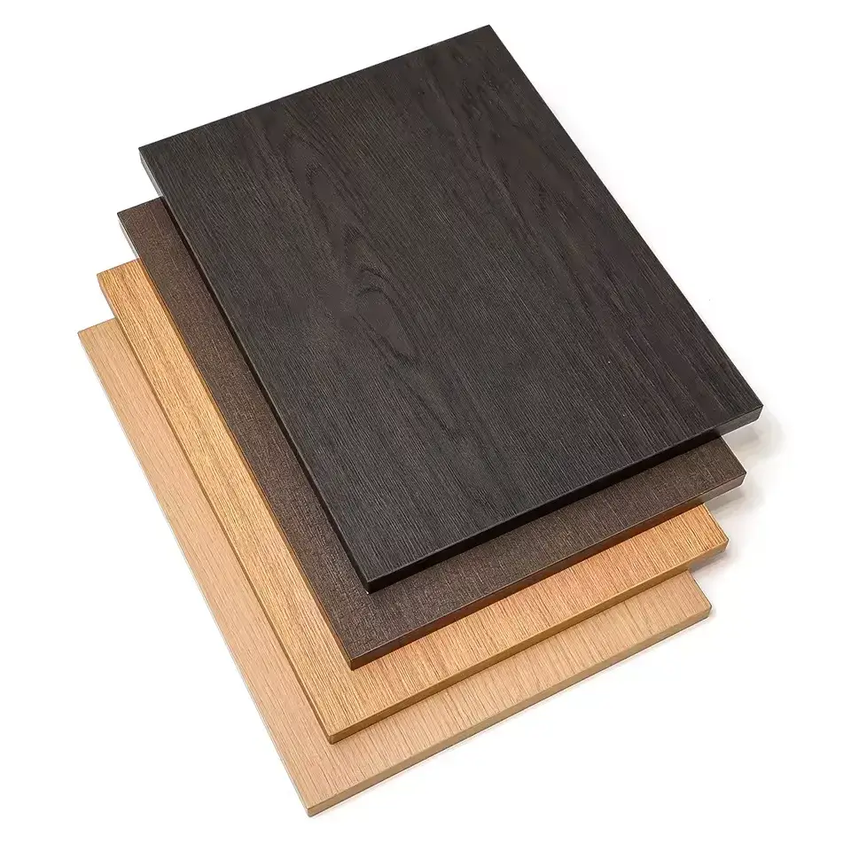 Press-laminated furniture panels are engineered wood boards finished with decorative surface materials—typically melamine-impregnated paper, veneer, or other resin-saturated décor layers—bonded to substrates such as particleboard, medium-density fiberboard (MDF), or high-density fiberboard (HDF) through a hot press lamination process.