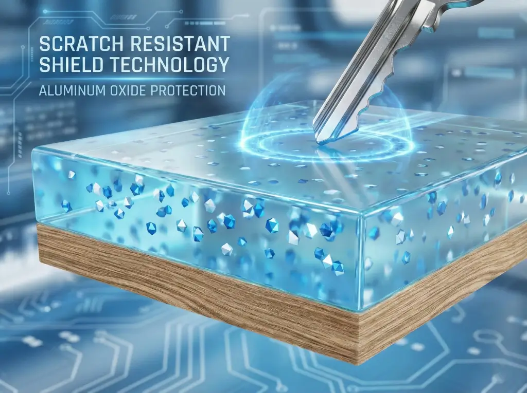 Beyond aesthetics, we engineer durability. For high-traffic applications like flooring or countertops, we offer Overlay Films or liquid overlay technology adding Aluminum Oxide (Al2O3) particles into the resin. This boosts the abrasion resistance significantly (up to AC3 – AC5 class). The finished surface becomes resistant to scratches, moisture, heat, and household chemicals, extending the lifespan of your final furniture products.