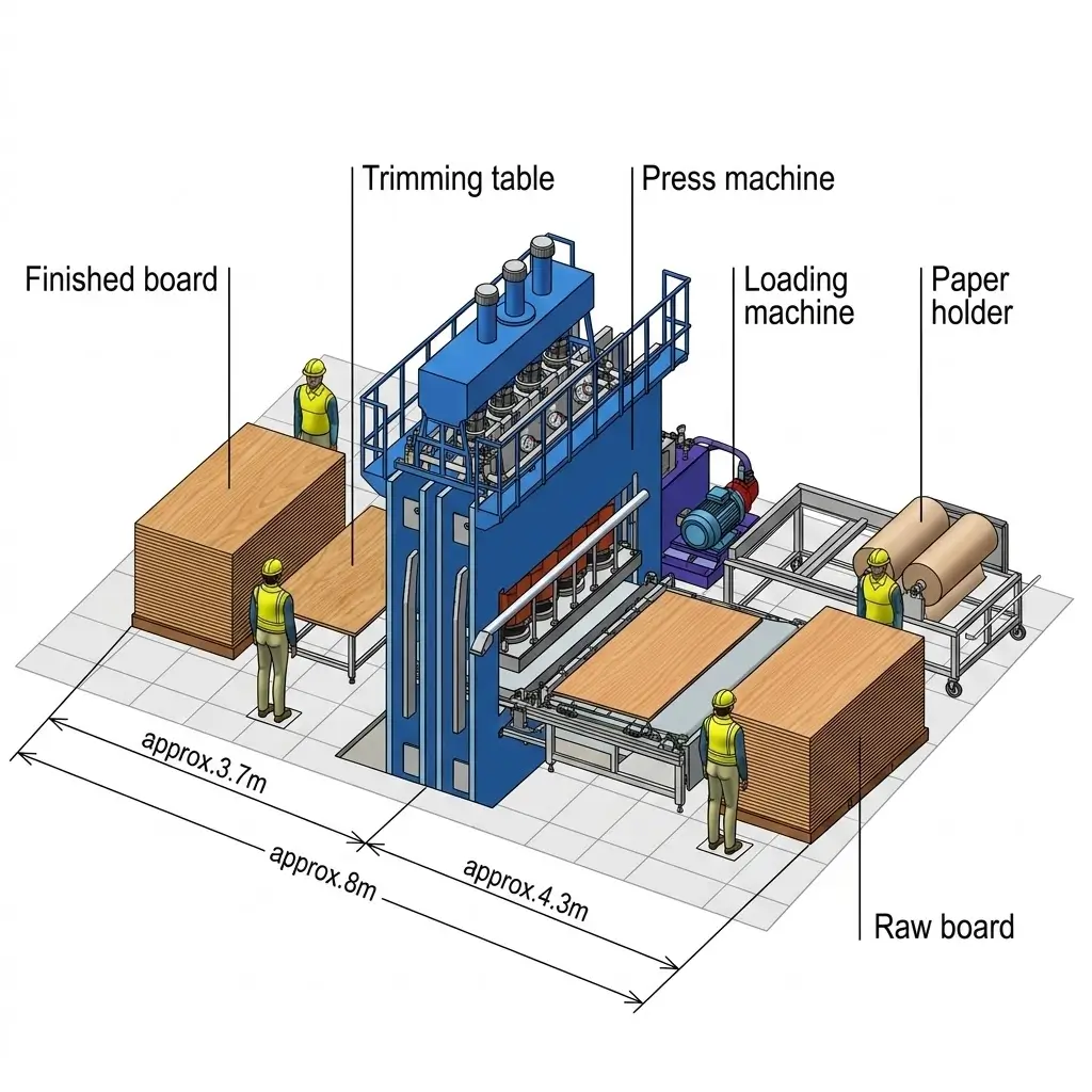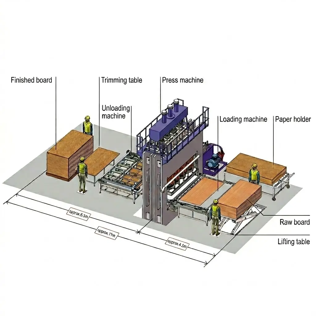 Product Advantages & Description: Specifically designed for large-scale, highly efficient batch production. This versatile machine handles a wide range of materials and is exceptionally adept at producing high-gloss melamine finishes. Its advanced multi-layer structure ensures uniform pressure distribution and synchronized heating across all layers (preventing bubbling or over-drying), which significantly boosts the output per cycle while drastically reducing energy consumption and labor costs per board.